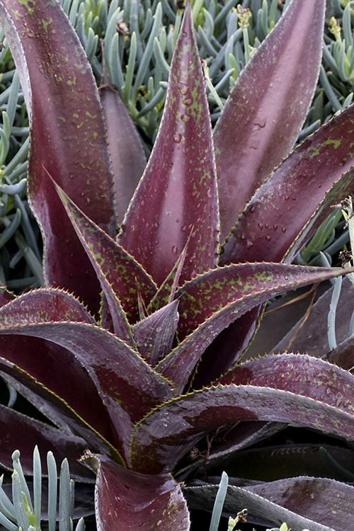 Growing 8 to 12 inches tall and 18 to 24 inches wide, the Mission To Mars Mangave is ideal for use as an accent in small spaces and as a solo or combined with other plants with low water needs in containers, or in groupings in larger spaces. It looks very nice and right at home around rocks and boulders. A fine addition to rock gardens, succulent gardens, red theme gardens, tropical look gardens, and Xeriscape Gardens (low water needs). We like combining Mangave with other low water need plants such as sedums and other succulents, junipers, barberry, abelia, and ornamental grasses.